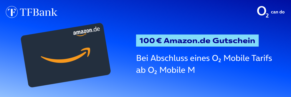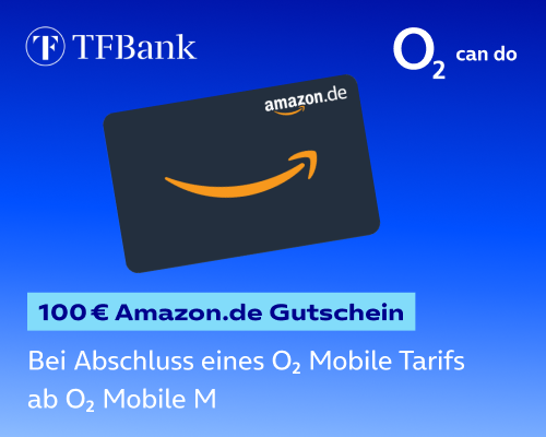 100 € Amazon.de Gutschein bei Abschluss eines o2 Mobile Tarifes (ab Mobile M) mit mind. 24 Monaten Laufzeit