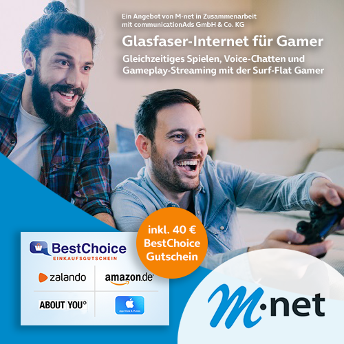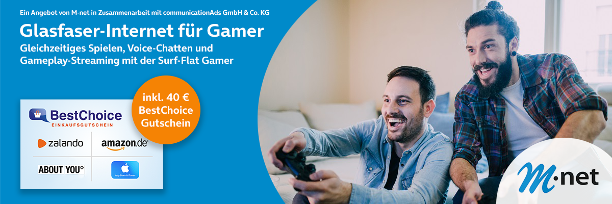 M-net Gamer-Tarif abschließen und 40 € BestChoice Gutschein sichern